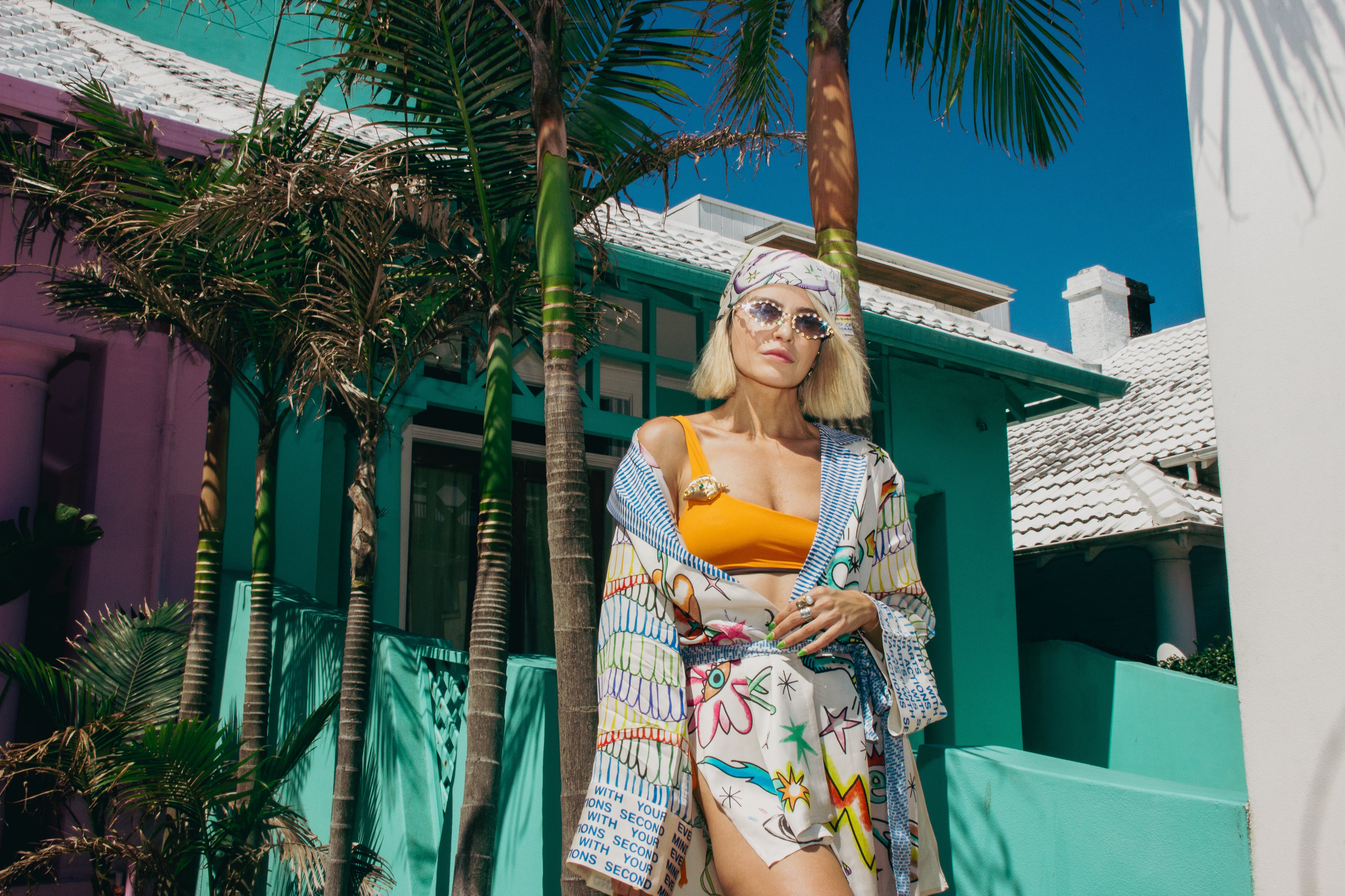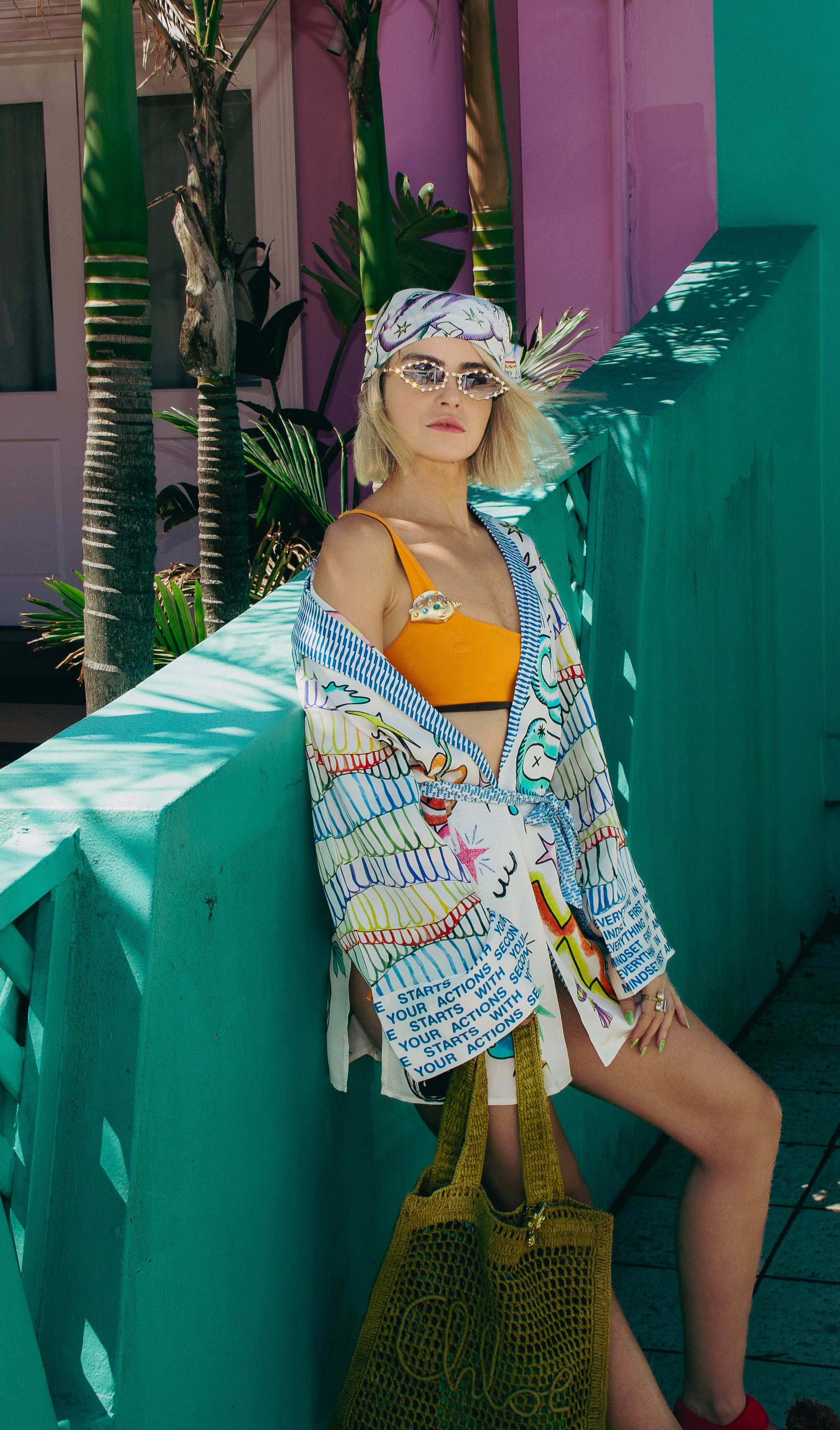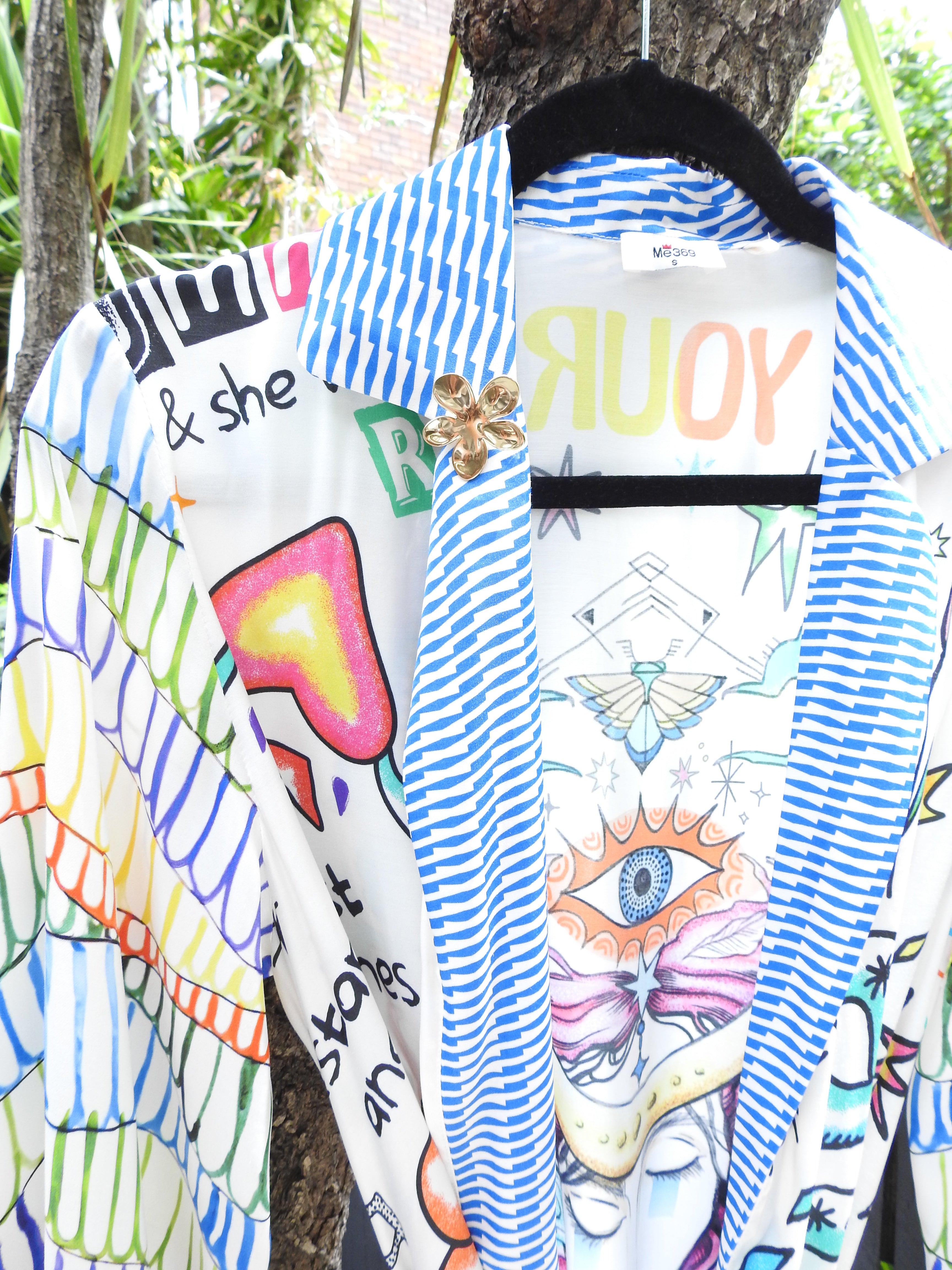 ENLIGHTENMENT LUCIA KIMONO BELTED JACKET & GOLD FUN FLOWER BROOCH