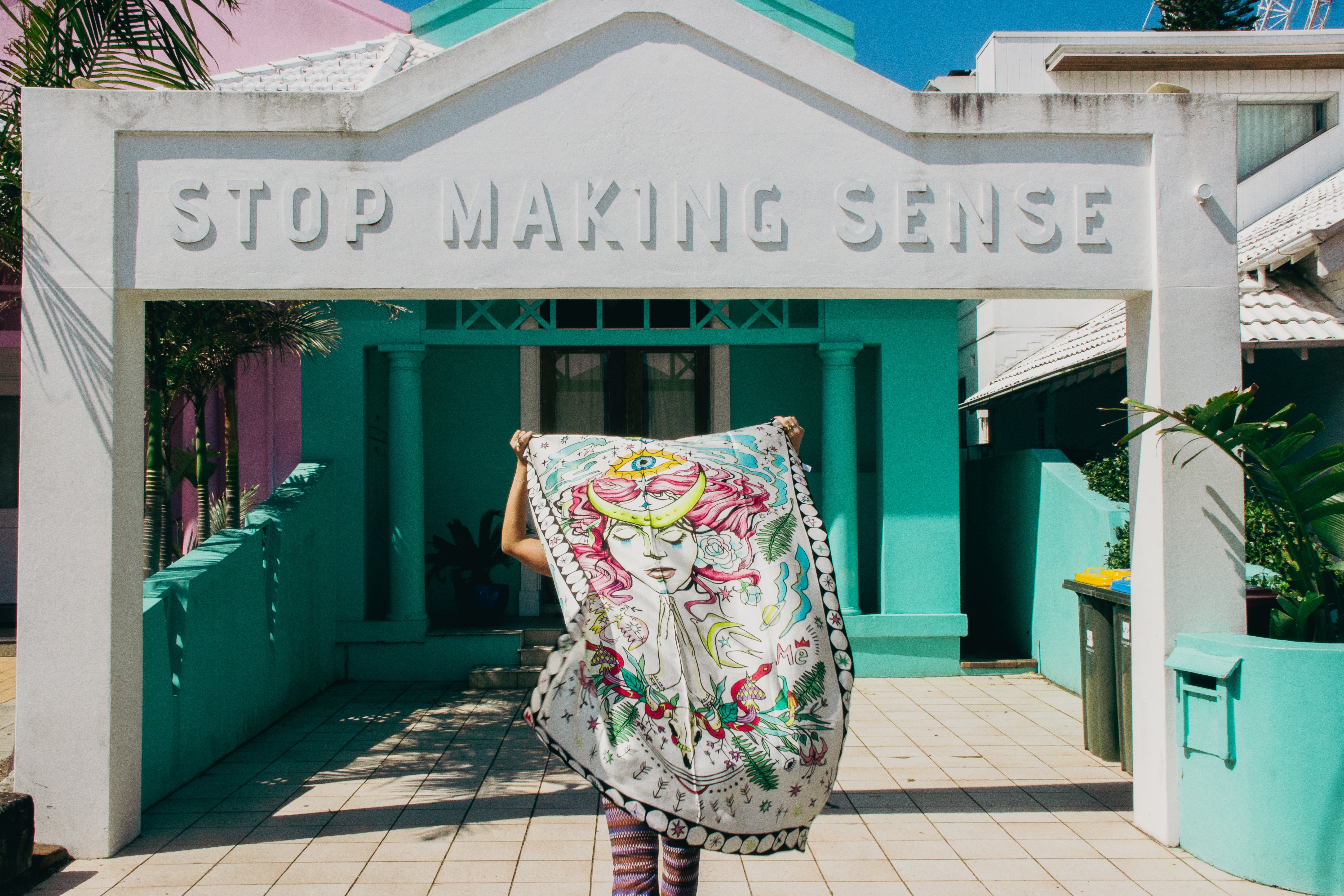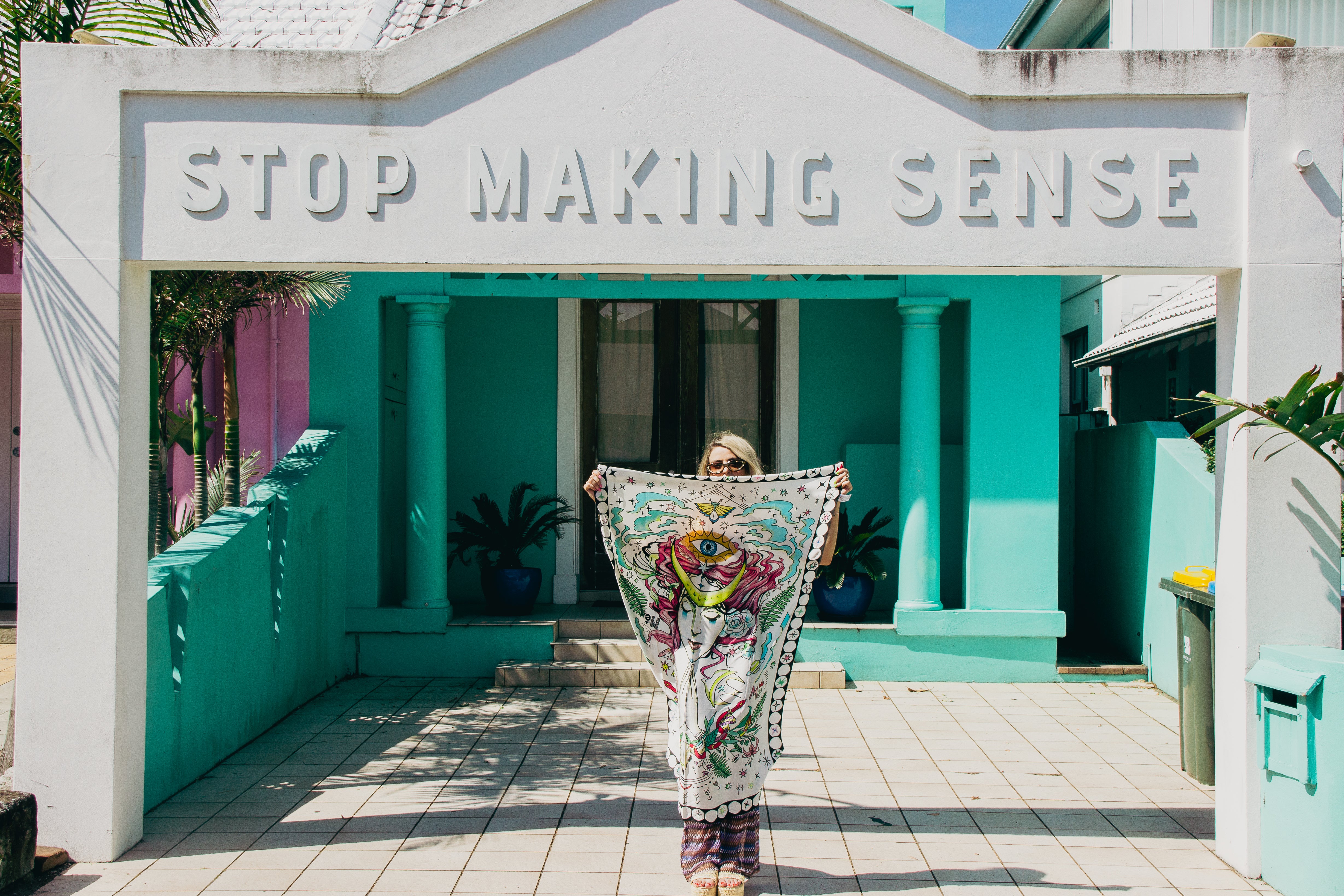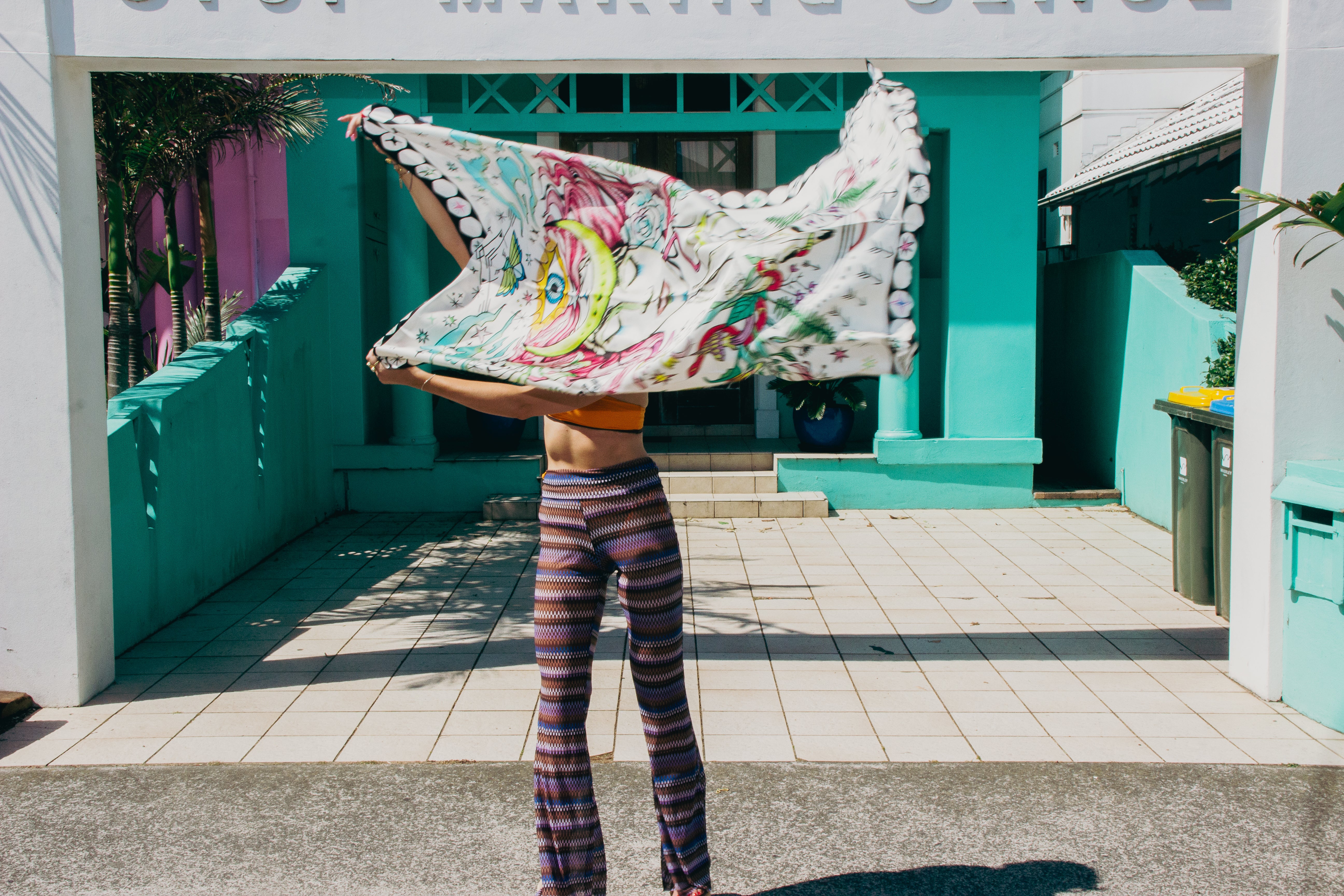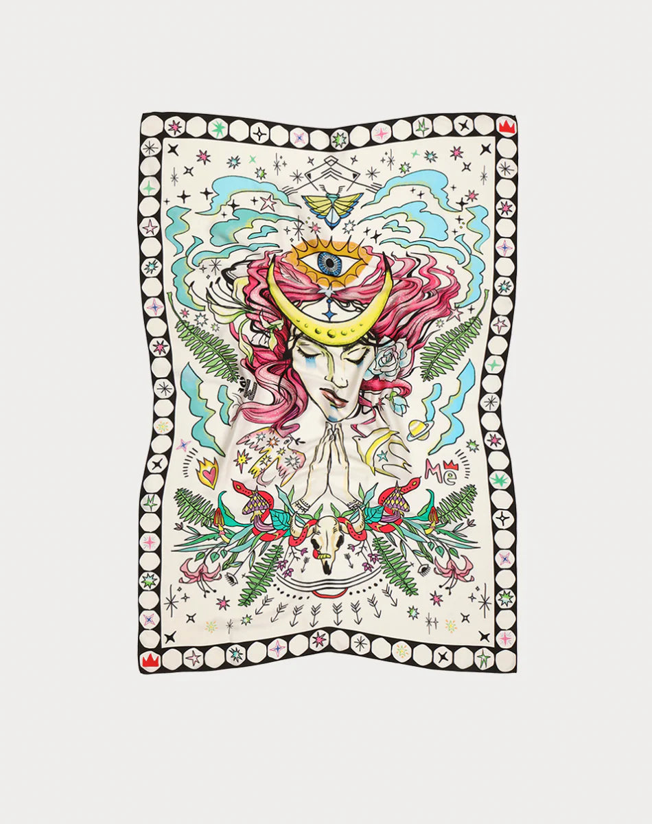 ENLIGHTENMENT PAREO / SCARF & GOLD ROUND BROOCH