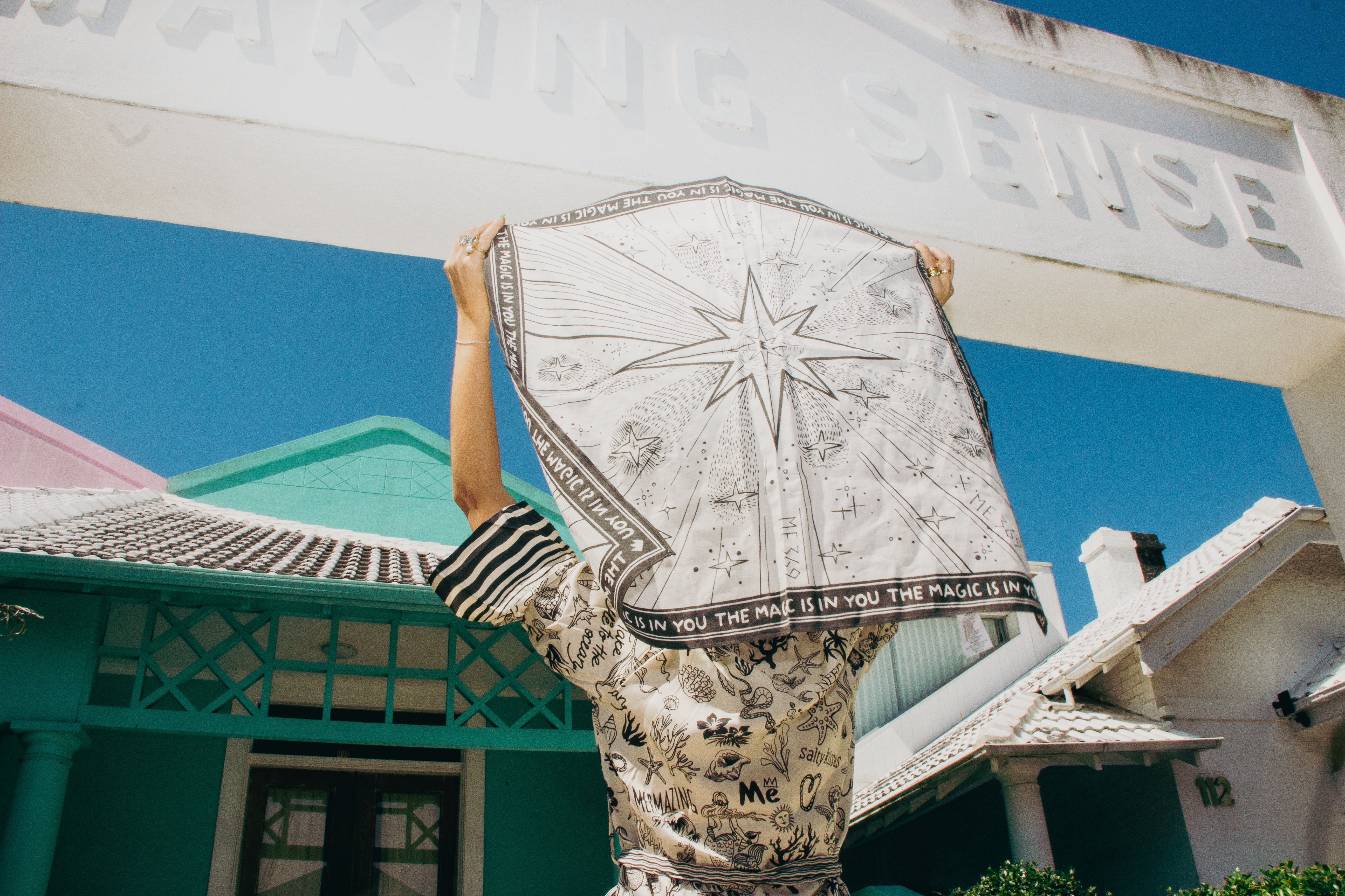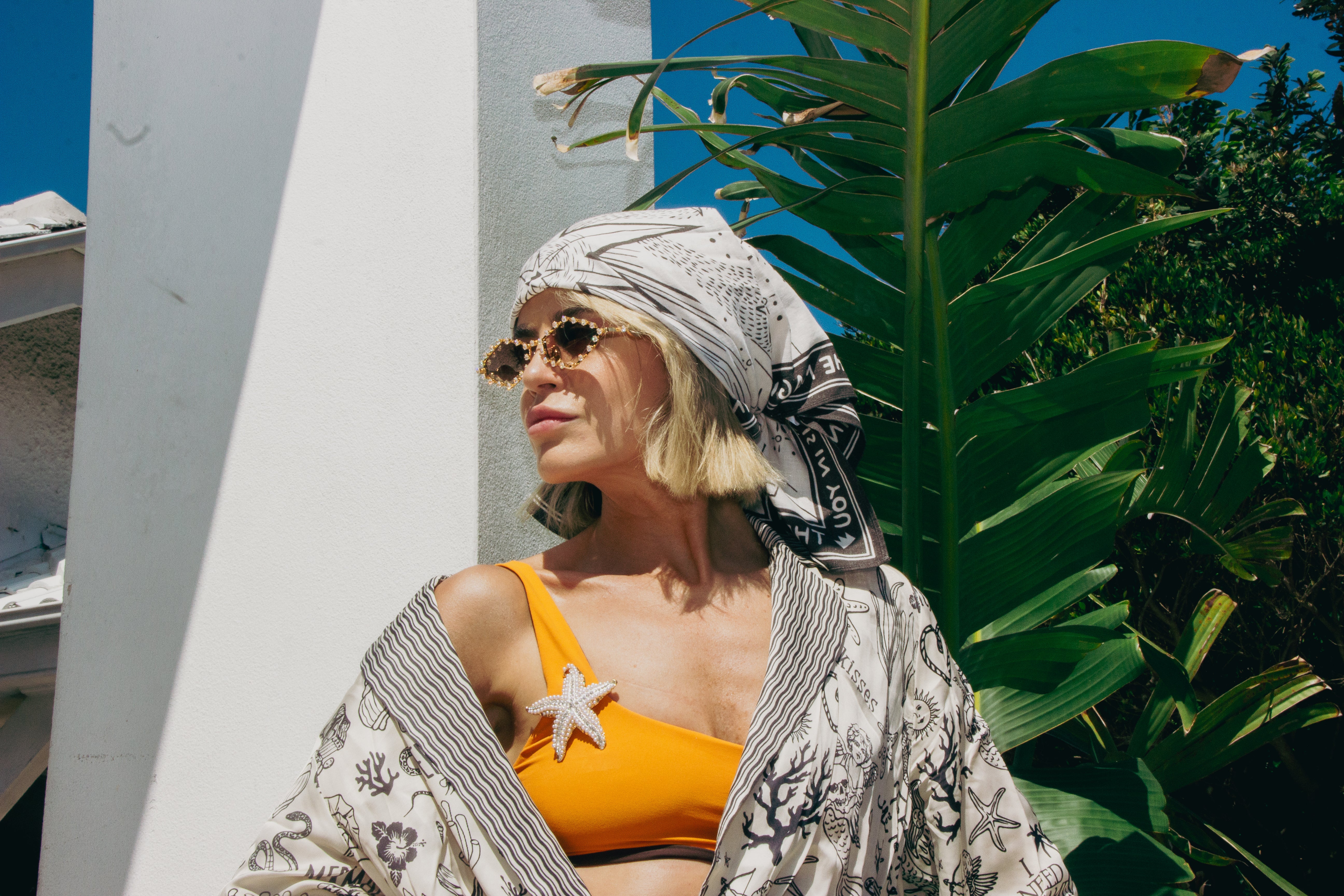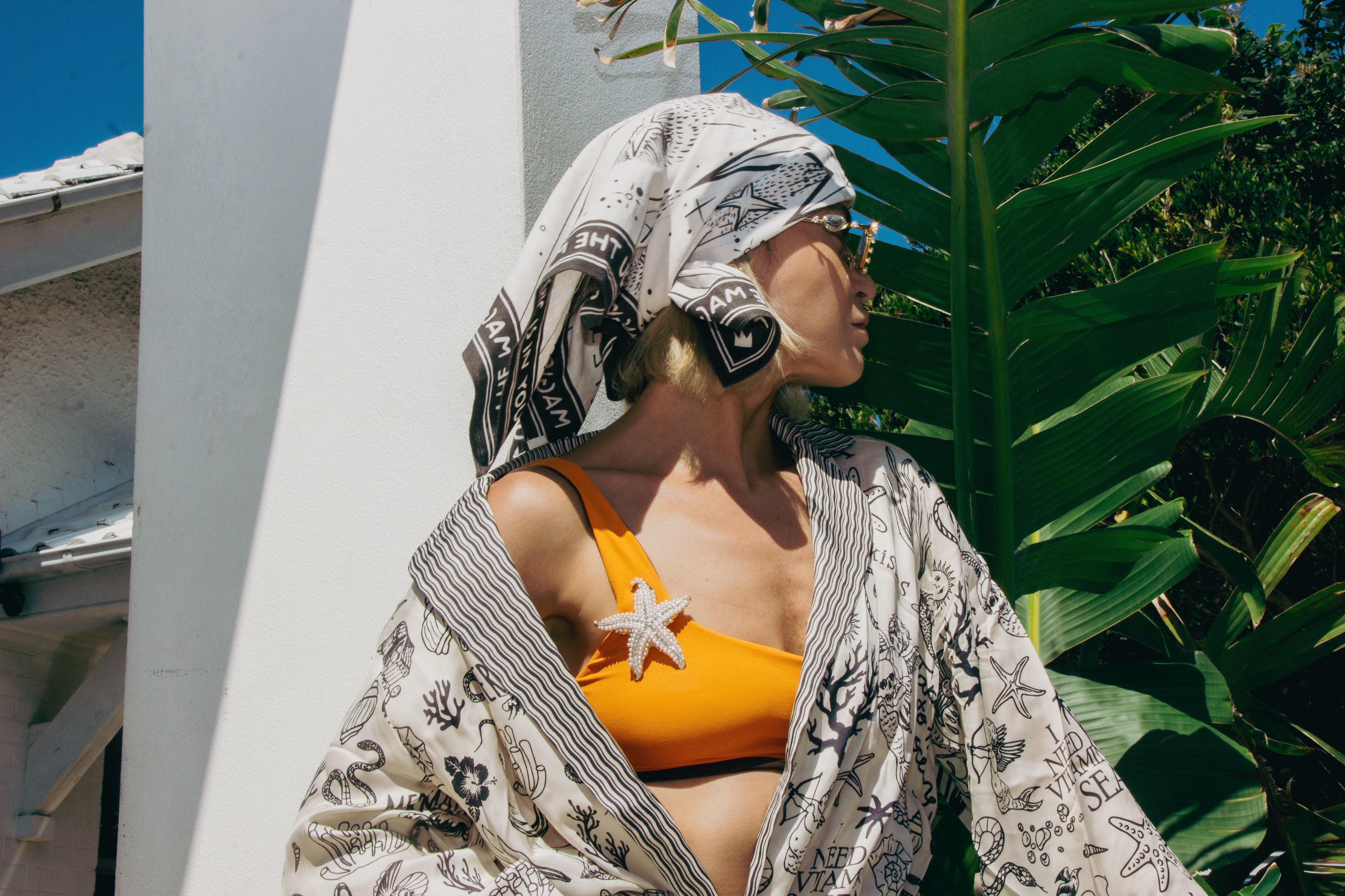 ZODIAC SARA HEAD SCARF & SILVER FUN FLOWER BROOCH