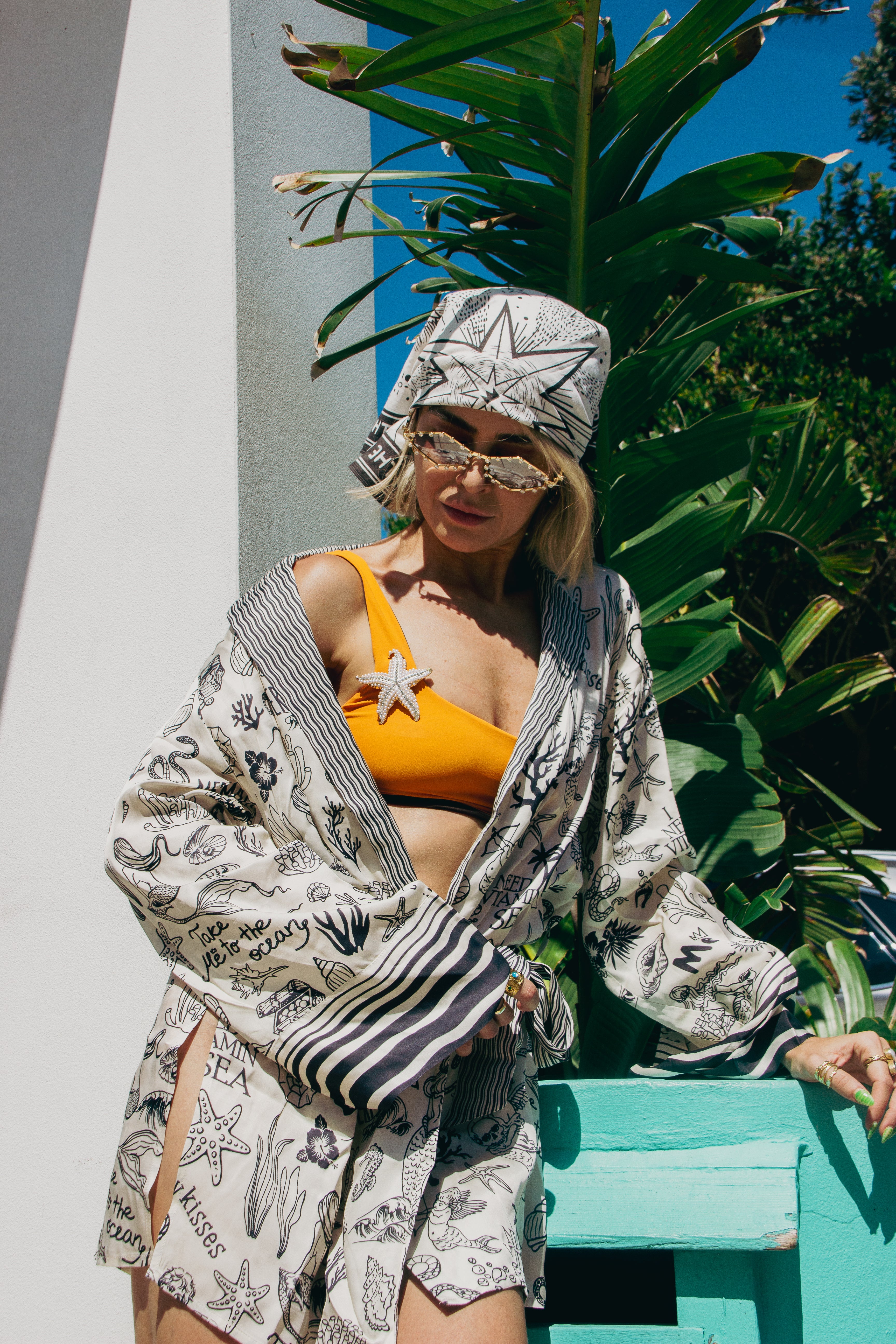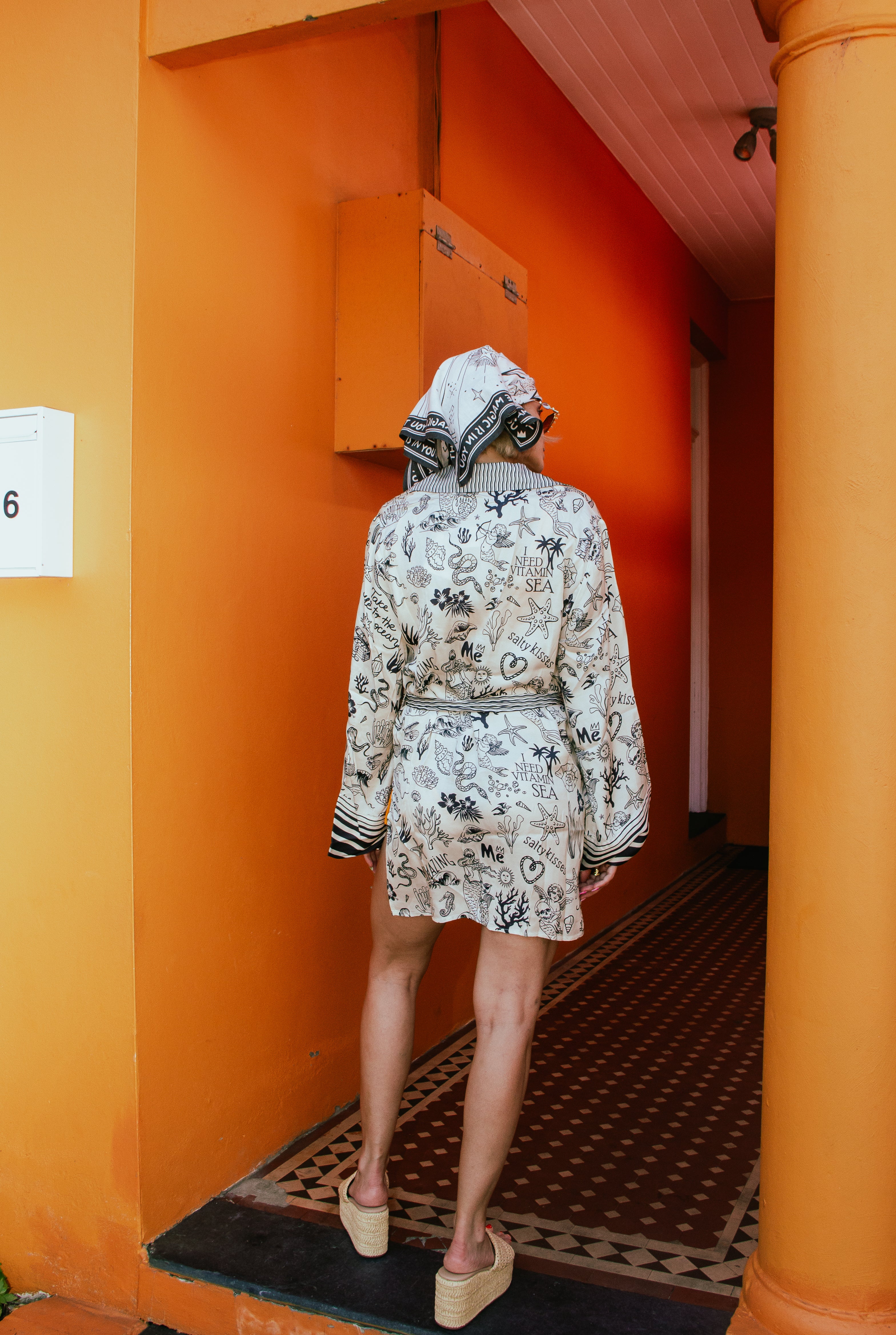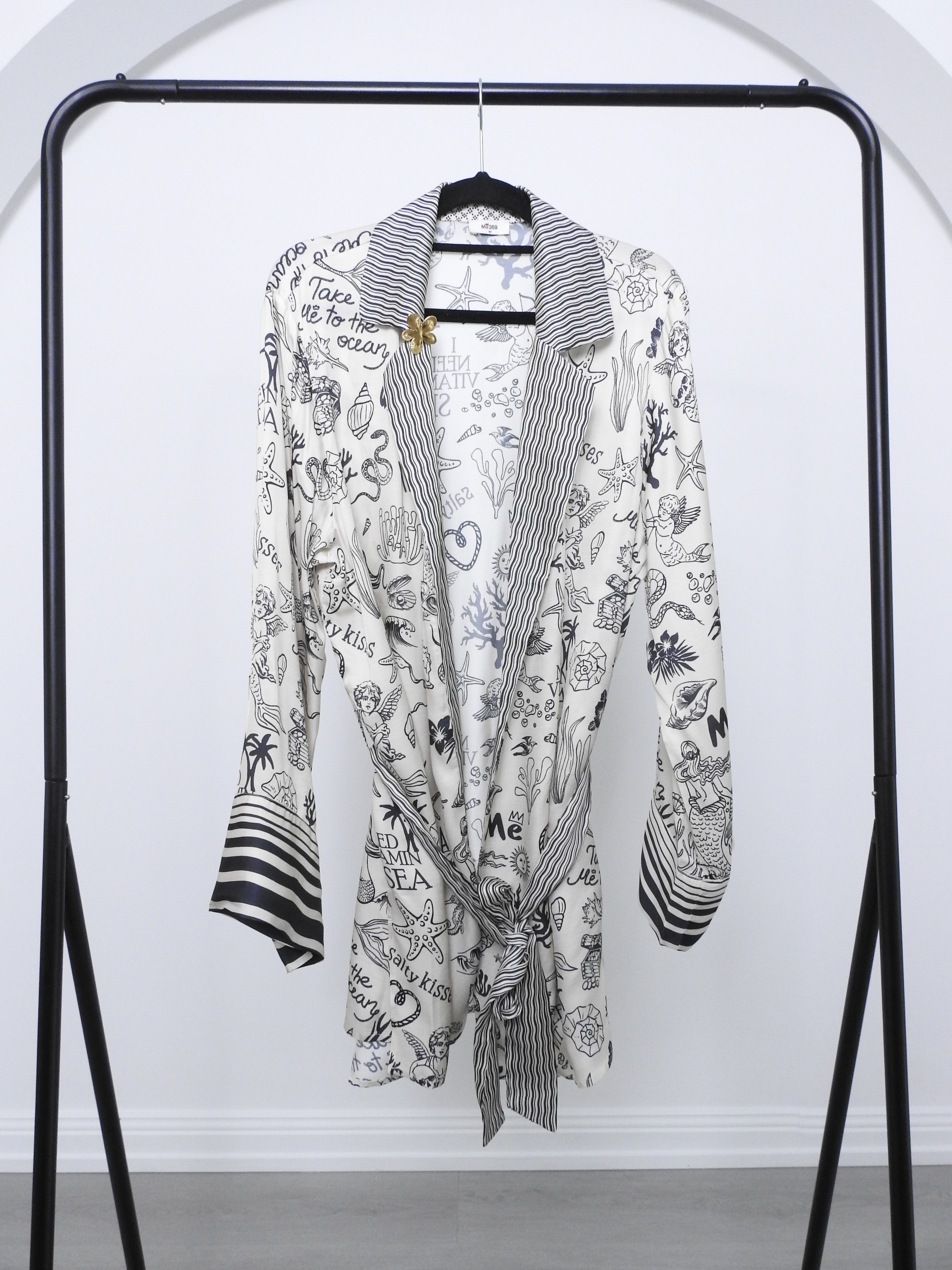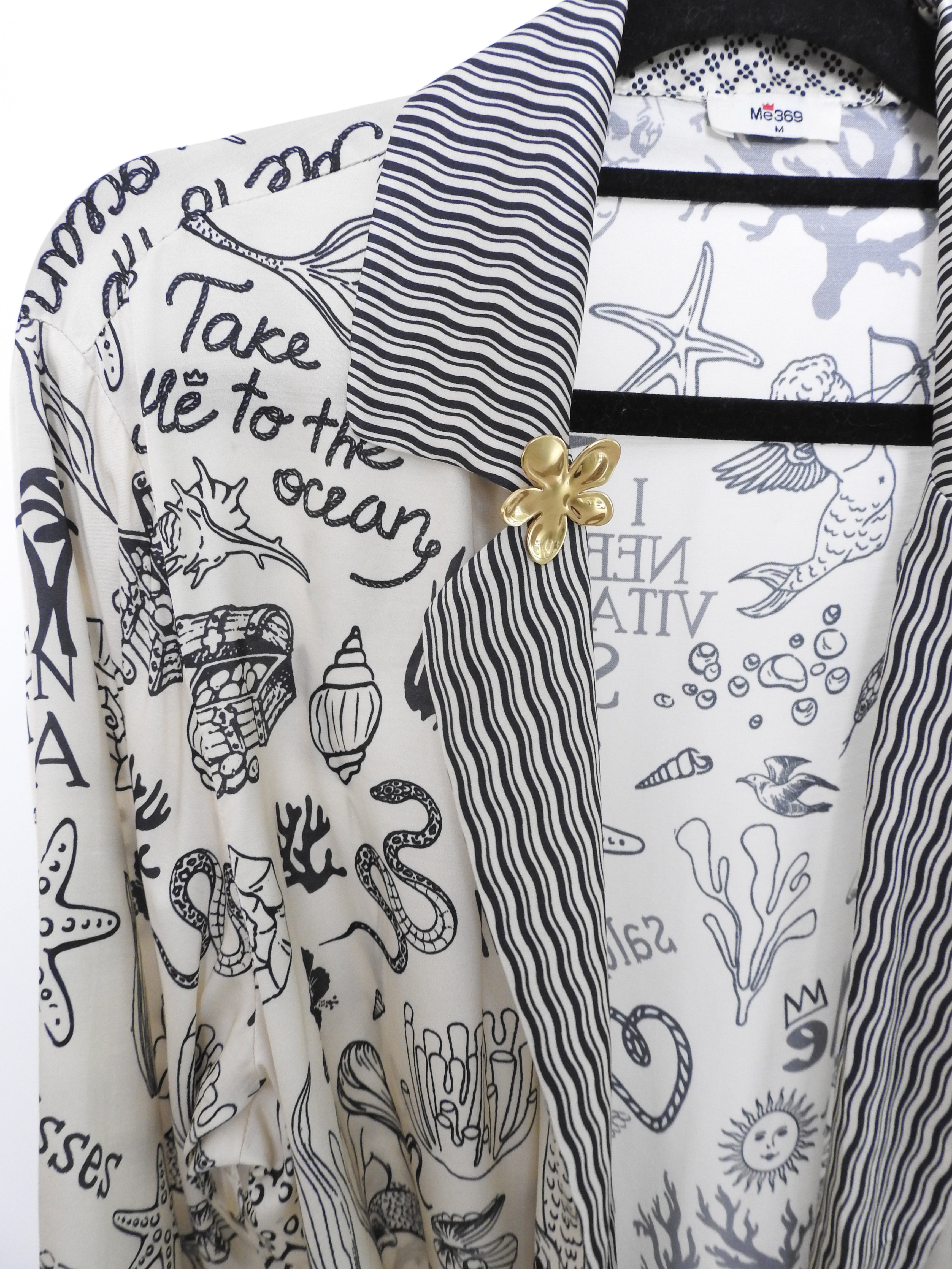 MERMAID ISABELLA KIMONO BELTED & GOLD FUN FLOWER BROOCH