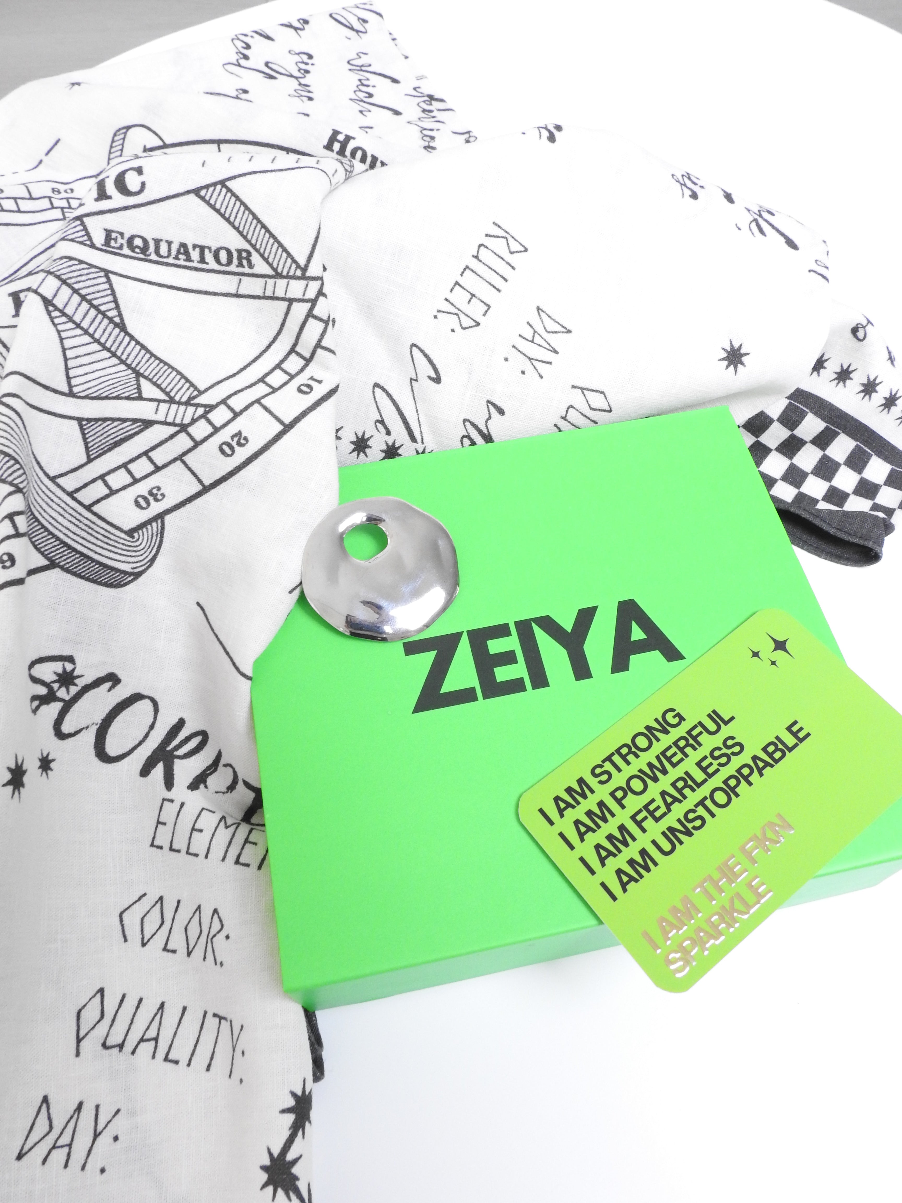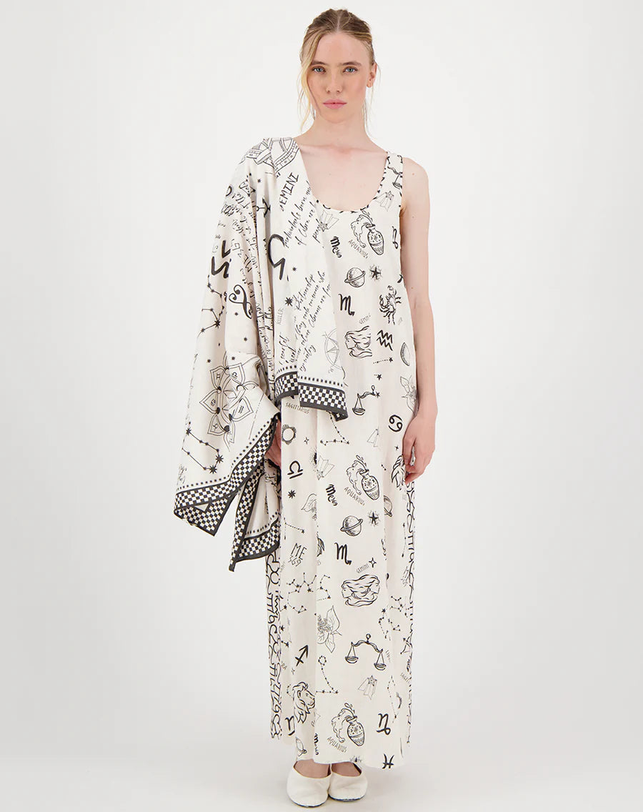 ZODIAC RIVER SCARF & SILVER ROUND BROOCH